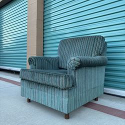 Vintage MCM Plush Striped Emerald Green Roll Arm Lounge Chair •FREE DELIVERY•$195Corona, CA