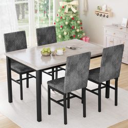 Dining Room Table Set for 4 Faux Marble 5 Piece Dining Table with 4 Modern Upholstered Velvet Chairs for Small Space, Home Kitchen, Apartment,Grey$155Ontario, CA