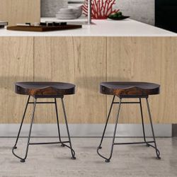 Two bar stools, bar stools Upholstered with counter height, modern stools with Black legs for kitchen, dining island or bar, brown color$160Rialto, CA