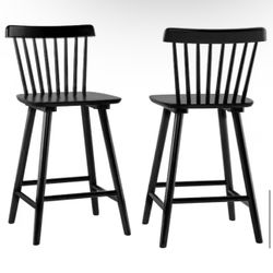 24 in. Black Classic Windsor Back Contoured Seat Bar Stools Solid Wood Counter Height Barstools(Set of 2)$80Hesperia, CA