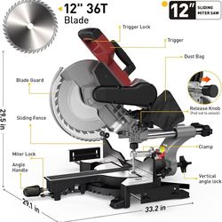 12-Inch Dual-Bevel Sliding Compound Miter Saw, 3800RPM, 15 Amp, Single Bevel 0-45° with Extension Table, 36T Blade, Power Saw for Metal, Plastic, Wood$120Rancho Cucamonga, CA