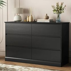 Farmhouse 6 Drawers Dresser for Bedroom, 54" Wide Wood Rustic Chest of Drawers with Natural Texture, Vintage Design, Storage Dressers Organizer for Be$125Chino, CA