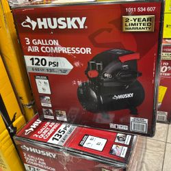 Husky 3 Gal. 120 PSI Portable Electric Oil-Free Light Duty Hotdog Air Compressor with Fold Down Handle and 1-Quick Coupler$40Garden Grove, CA