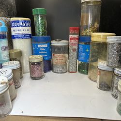 Large mixed lot of craft glitter and flakes. vintage jars and modern containers in a wide range of colors and textures: silver, gold, green, $40Whittier, CA