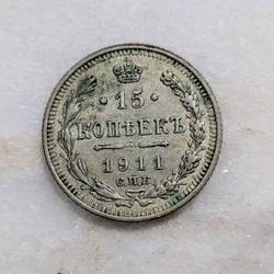 1911 Russia Silver 15 Kopeks Nicholas II Empire Era High Grade XF$20Long Beach, CA