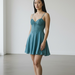Oh Polly Lace Fit & Flare Mini Dress Teal Sweetheart Strappy Sleeveless size 2$20Arcadia, CA