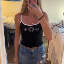 Denim Bustier Like Top With Puffy Sleeves Size L Never Used$20Anaheim, CA