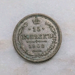 1908 Russia 15 Kopeks Silver Coin Nicholas II Imperial Russia SPB EB VF$16Long Beach, CA
