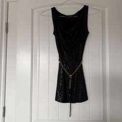 Black Metallic Polka Dot Cowl Neck Cocktail Dress with Gold Chain Belt (S)$25Los Angeles, CA