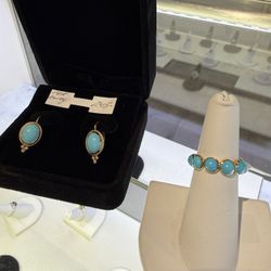 14K 18K Yellow Gold Turquoise Earrings, Ring $111Seal Beach, CA