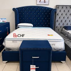 Blue Velvet Queen Size Bed Frame // Mattress Sold Separately $489Temple City, CA