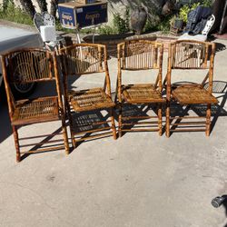 4 Vintage Folding Chairs Mid CenturyTortoiseshell Bamboo Rattan excellent!$500Artesia, CA