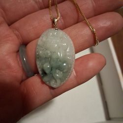Certified Grafe A Green Icy Flower Jade Jadeist Byrma.pdnt S925 Chain Gidlmoverlay 18" $55San Jose, CA