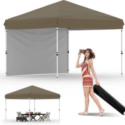 NEW 10'x10' Pop Up Tent Canopy + 1 Sidewall - Easy Up Camping Tent with One Button Push Setup - 1 Roller Bag, 3 Adjustable Height, 4 Weight Bags for D$75San Jose, CA