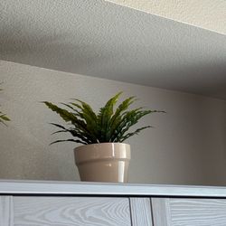 White vase with green fake plants$10San Ramon, CA