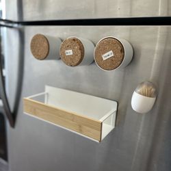 Magnetic Refrigerator Organizer Bamboo Shelf, 3 storage Jars, & Toothpick dispenser – Modern Kitchen Storage Rack$30Hillsborough, CA