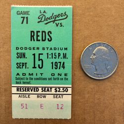 1974 Los Angeles Dodgers Ticket Stub and 1976 Dodgers Schedule$40Fontana, CA