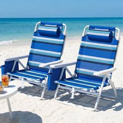 2pcs Folding Backpack Beach Chairs, 5-Position Protable Beach Chair, Low Profile Reclining Chair w/ Headrest, Cooler Pouch, Storage Bag, Towel Bar, Fo$80Arrowhed Farm, CA