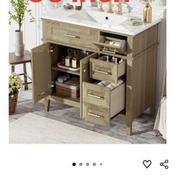 36" Modern Bathroom Vanity with Ceramic Sink Combo, Freestanding Rubberwood Bathroom Storage Cabinet with 2 Soft Close Doors, 1 Flip-Down Drawer, 1 Sh$200Chino, CA