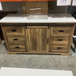 60" Bathroom Vanity Barn Door Stone Countertop (Top Damaged)$350Ontario, CA
