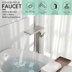 Hoimpro Floor Mount Bathtub Faucet Freestanding Waterfall Tub Filler, Brushed Nickel Single Handle High Flow Shower Faucets Mixer Bathroom Tub Faucets$189Ontario, CA