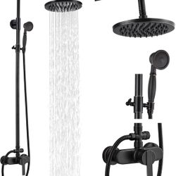 gotonovo Exposed Bathroom Shower Faucet Set Shower Fixture 8 Inch Rainfall Shower Head Handheld Shower Cross Handle Wall Mount 2 Functions Oil Rubbed $100Ontario, CA