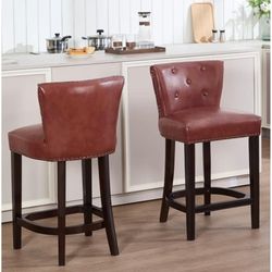 Barstool Set of 2, Genuine Leather Thickened Seat Barstools with Backs & Solid Wood Legs,for Kitchen Island, Dining Room (Brown Seat Cushion, Seat Hei$80Fontana, CA
