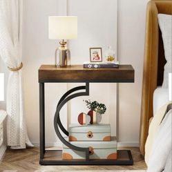 Side Table Brown Black C Shaped End Table Modern Bedside Tables for Couch, Small Sofa Tables with Metal Frame for Living Room (1, Brown+Black)$20Fontana, CA
