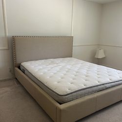 Beige Upholstered Wingback Bed + Box Spring + Mattress (Costco) $200Yorba Linda, CA
