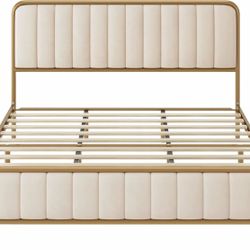 Queen Size Bed Frame with Button Tufted Headboard, Upholstered Heavy Duty Metal Mattress Foundation with Wooden Slats, Easy Assembly, No Box Spring Ne$110Rancho Cucamonga, CA