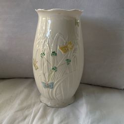 Belleek Butterfly, And Shamrock Porcelain Vase, Ireland. 10”, Xlnt Cond$20Upland, CA