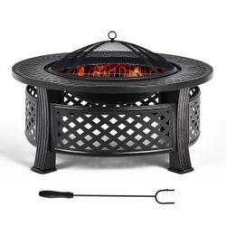 32" 3 In 1 Round Outdoor Fireplace With Bbq Grill And High-Temp Resistance Finish$100Ontario, CA