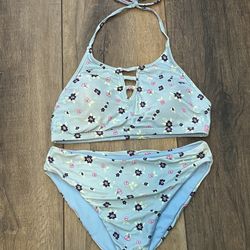 Girls, Tilly’s Baby Blue, padded Floral Bikini, Size 14$5Covina, CA