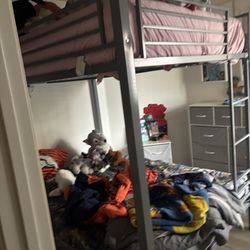 Low twin loft bed with pullout desk, dresser, and shelves.$250La Verne, CA