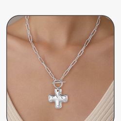 Joxevyia Cross Necklace for Women Hammered Cross Pendant Toggle Clasp Paperclip Chain Statement Choker Bold Faith Jewelry Gift$12Skyforest, CA