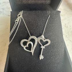 925 Sterling Silver, Genuine Diamond 💎 Heart And Key Necklace, Tested In Photos , Marked JWBR 925, Renaissance Jewelry, New York. 18in 925 Chain $48Victorville, CA