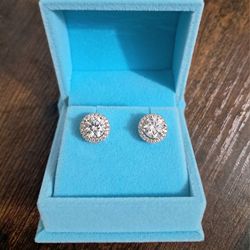 (NEW) 3 CT White Sapphire Stud & Genuine Diamond Halo Men's Earrings Italian Sterling Silver (Retail $179.99)$120Rancho Cucamonga, CA