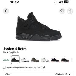 Jordan 4 Blackcats Size 12$300Grand Terrace, CA