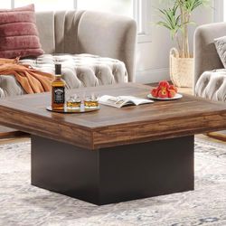 Tribesigns Coffee Table Square LED Coffee Table Engineered Wood Low Center Cocktail Tables for Living Room (Rustic Brown+Black $60Hesperia, CA