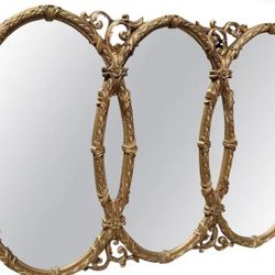 Vintage Triple Oval Ornate Gold Wall Mirror – Attributed to Bassett | Hollywood Regency French Provincial Style $1,500Grand Terrace, CA
