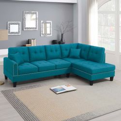 Navy Blue Velvet L Shape Sectional Button Tufted RAF Chaise $1,799San Bernardino, CA
