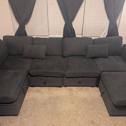 NEW LARGE U SHAPE Sectional Sofa with Storage Chaise and Pullout Sleeper Bed Under Seat Pull out sofabed Ashley Style BIG COUCH SALE Season Discount$899Highland, CA