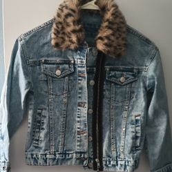 Denim Jacket S Removable Leopard Neckline/Nuevo Chamarra De Mesclilla S $25City Of Industry, CA