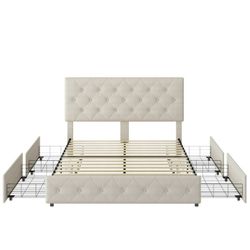 Full Beige Upholstered Bed Frame with Diamond Tufted Headboard & 4 Storage Drawers$160Ontario, CA