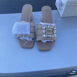 Beige Kathleen Raffia Buckle Block Heels 9$10Victorville, CA