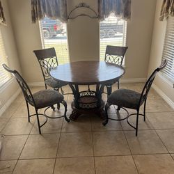 Round Wood Top Dining Table & 4 Ornate Metal Chairs$225Victorville, CA