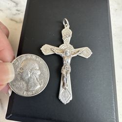 Beautiful vintage 925 Sterling silver crucifix cross pendant . Detailed nicely!! Marked Sterling , nice size .$32Victorville, CA