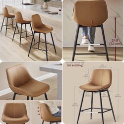 New In Box Set Of 2 Counter Height 24 Inch Tall Swivel Stool Barstool Chair Caramel Brown Color Modern Contemporary Style $40Covina, CA