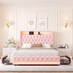 Full Size LED Bed Frame with 2 Storage Drawers & Charge Station, Modern Wingback Upholstered Platform Bed Frame, Pink Velvet$220Rancho Cucamonga, CA
