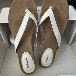 Style & Co White leather & beige Swede Wedge Thong Sandals sz 7$30Alta Loma, CA